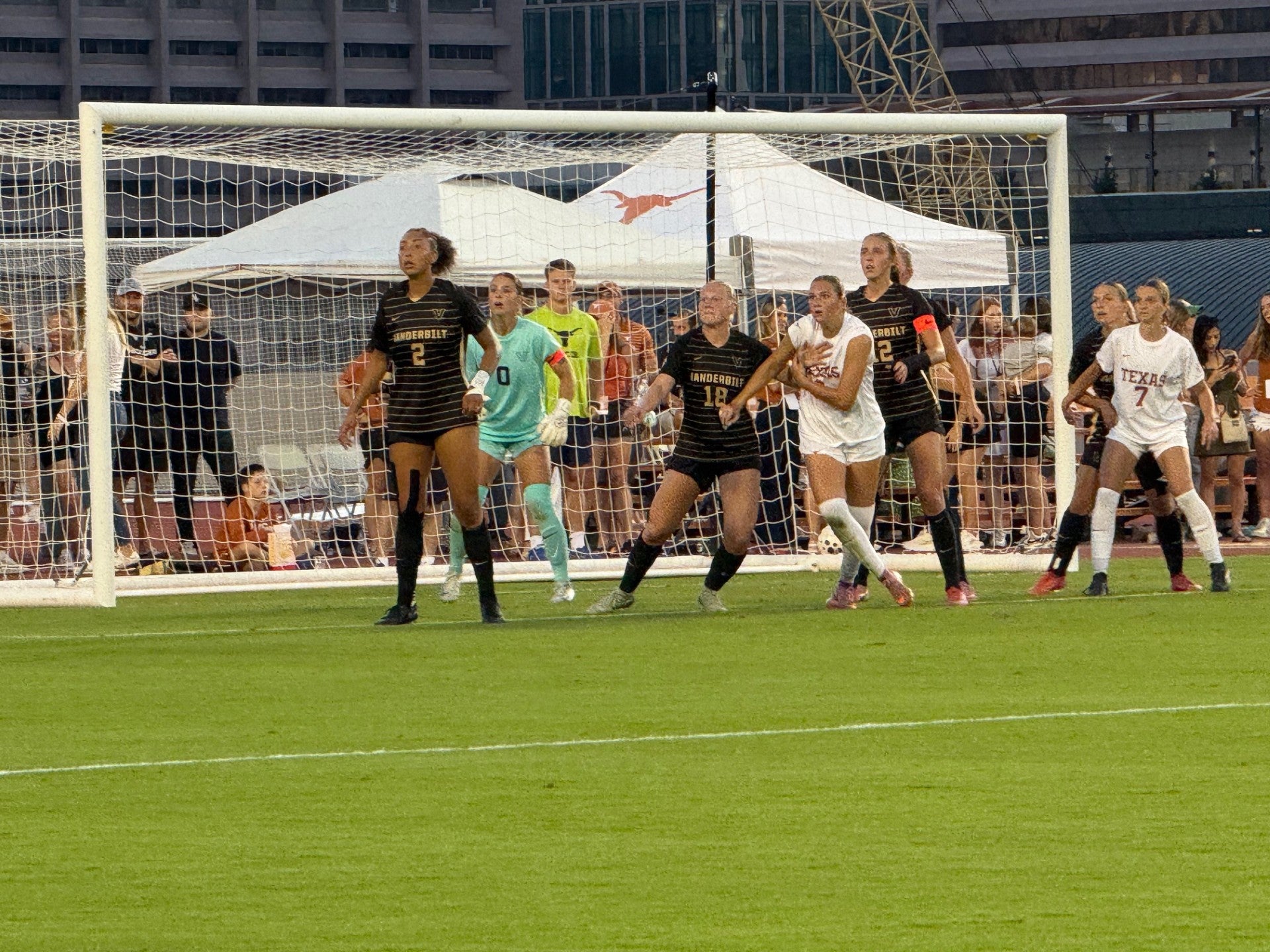 The match itself was as exciting as the atmosphere. When the game kicked off, the sun was still shining, and the first half ended in a tense 0–0 tie. As the teams returned from halftime, the sky lit up with a sunset backdrop that seemed to energize both the players and the crowd. The Longhorns came alive in the second half, ultimately securing a 2–1 victory over Vanderbilt, with both teams battling hard until the final whistle.